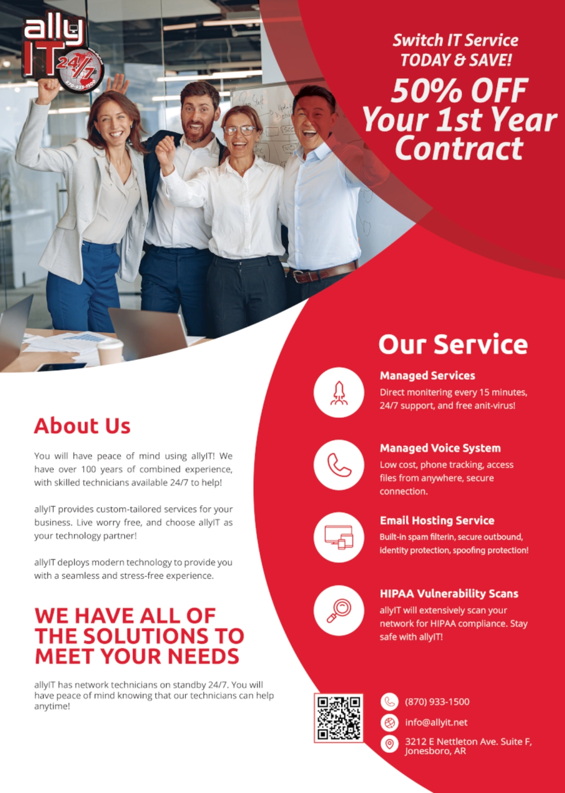 Contact UsAlly IT provides custom-tailored services for your business. Live worry free, and choose Ally IT as your technology partner!